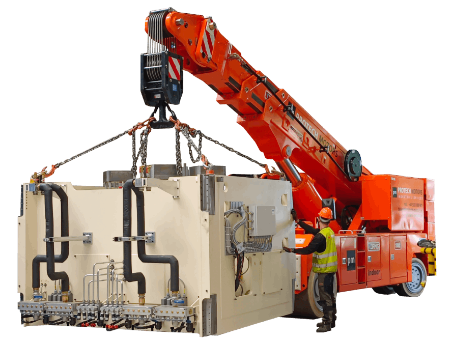 Realizacja zlecenia przebiega z wykorzystaniem fachowych zestawów narzędzi. Dysponujemy sprzętem odpowiednim dla każdego rodzaju maszyny czy urządzenia znajdującego się w parku technologicznym. Do naszej pracy wykorzystujemy, jeśli tylko zaistnieje taka potrzeba, również żurawie i podnośniki (np. w przypadku przygotowania maszyny do transportu, co znajduje się w ofercie Protech Motors).