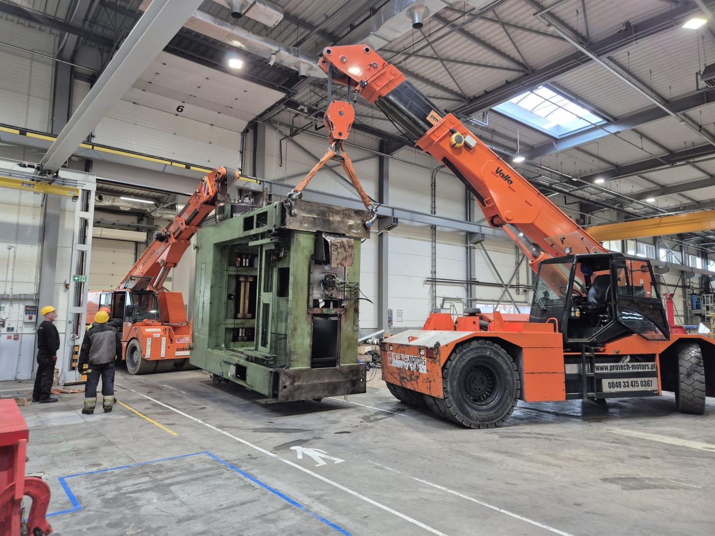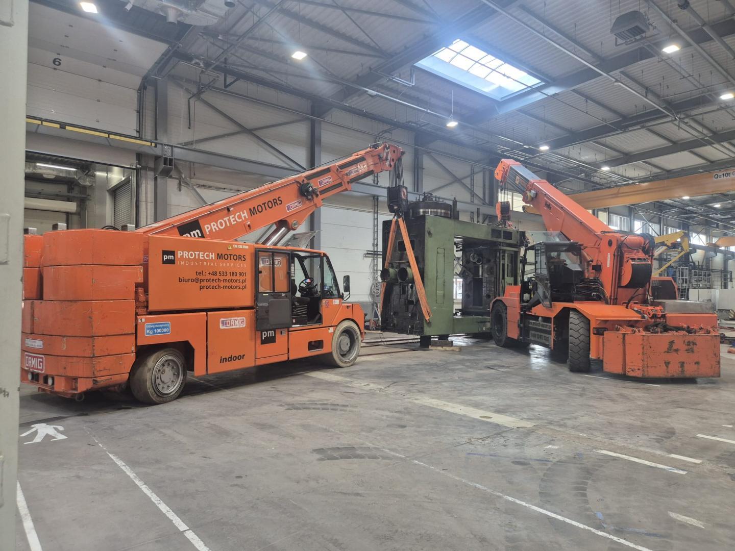- Dźwigi i suwnice hydrauliczne do przenoszenia maszyn wielkogabarytowych.