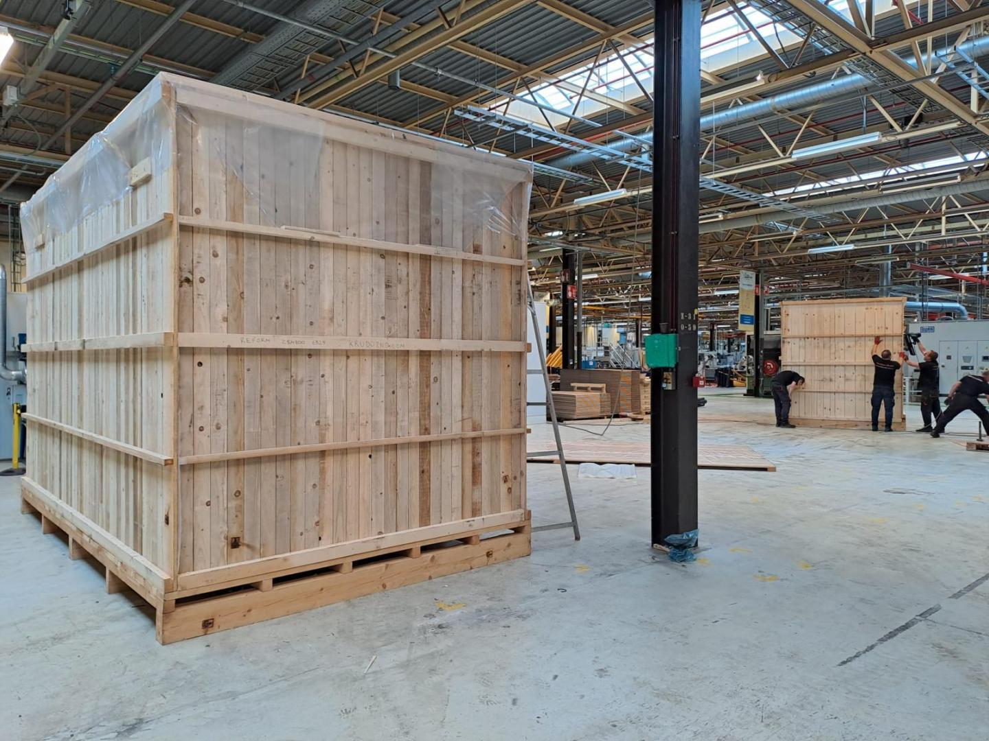 - Wzmocnione skrzynie drewniane odporne na warunki atmosferyczne, zgodne z normami eksportowymi.