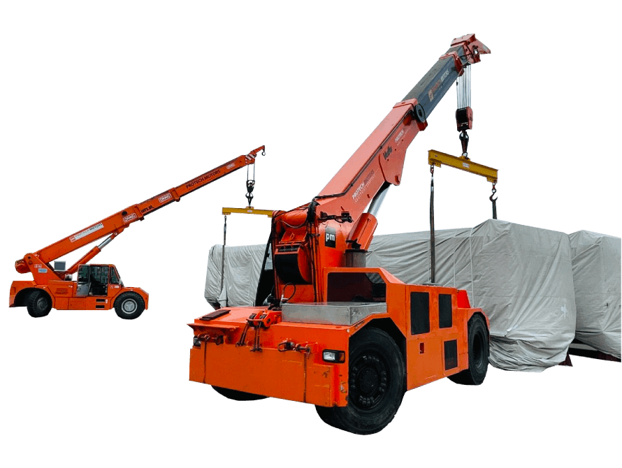 - Specjalistyczny wózek Mobilift o ładowności do 27 ton z teleskopową ramą i wysuwaną przeciwwagą,