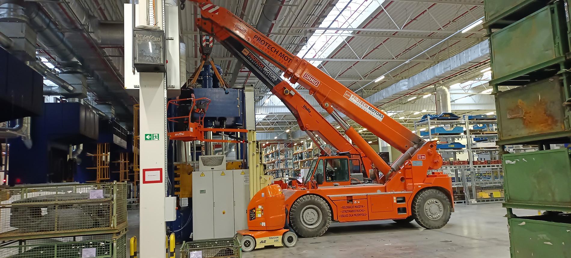 Protech Motors przeprowadził relokację prasy hydraulicznej o masie 55 ton na terenie Wrocławia, w województwie dolnośląskim. Operacja ta została zrealizowana z wykorzystaniem dwóch dźwigów – Valla oraz Ormig 100 iE, co zapewniło bezpieczny i efektywny przebieg relokacji.